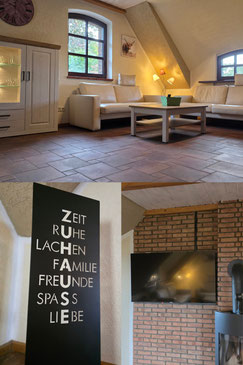 Im großen Wohn-Essbereich finden 6 Personen am Esstisch, aber auch auf der Couch platz. Sie ist ausgestattet mit Smart-TV und Alexa (bei Bedarf ein zu steckern ). Auch ein Kaminofen ist für die kalten Wintertage vorhanden. Ein Kinderhochstuhl kann aus dem Kinderzimmer herüber geholt werden.