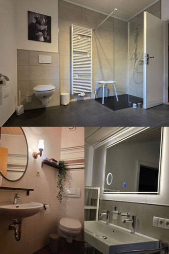 Es gibt ein Gäste-WC nahe des Flur's sowie ein saniertes Haupt-Bad mit großem Waschtisch, Bodentiefer "Softside"-Dusche sowie Waschmaschine & Trockner. Hier wird es an nichts fehlen!