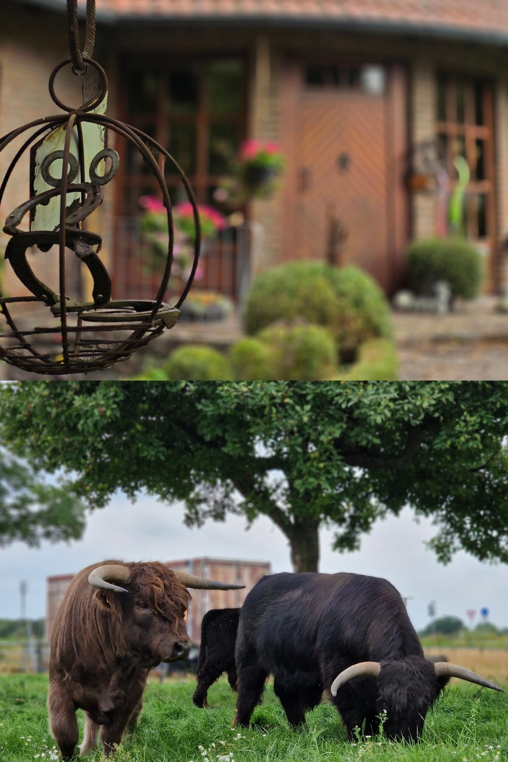 Zur Landidylle tragen auch unser kleiner Hofladen, unsere Ziegen, Rinder und Hühner vor Ort bei, sodass es auch bei einem Besuch mit Kindern nie langweilig wird.